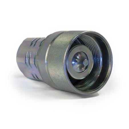 Coupleur hydraulique très haute pression à clapet avec verrouillage à vis. Nos coupleurs sont conformes à la norme ISO14541, la plus courante sur le marché. Le coupleur idéal pour les brises roches, marteau hydraulique le coupleur hydraulique à visser a une partie mâle avec un écrou avec gros pas de vis qui permet l’accouplement hydraulique sur la partie femelle. Le verrouillage à vis permet un accouplement et un désaccouplement sous pression facile.